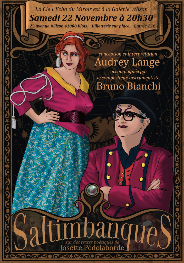 Conçu et interprété par Audrey Lange, accompagnée du musicien Bruno Bianchi, Saltimbanques propose une expérience interactive mêlant théâtre et musique. Inspirée des textes de Josette Pédelaborde, la comédienne incarne divers portraits tirés au hasard d’un jeu de cartes, chaque personnage laissant un message ou un présage au public. Un spectacle tour à tour drôle, émouvant et dépaysant, où la frontière entre artiste et spectateur s’efface.