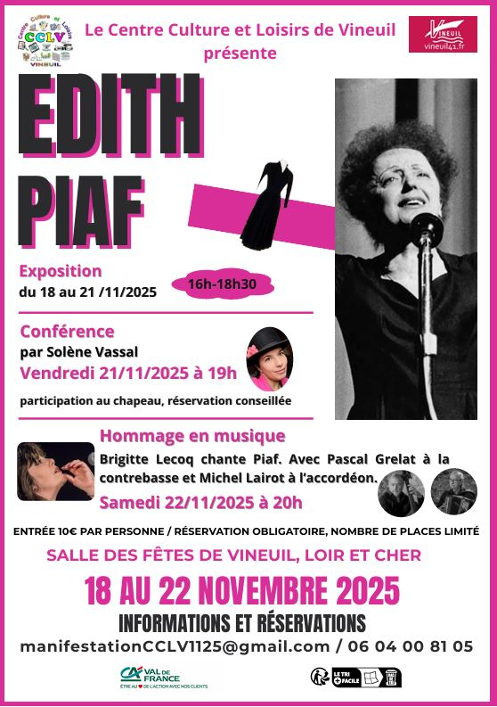 📅 19h – Conférence-rencontre sur la vie d’Edith Piaf avec Solène Vassal