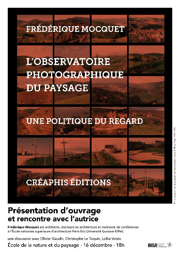 Présentation et discussion autour du dernier ouvrage de Frédérique Mocquet, consacré aux observatoires photographiques du paysage, publié aux Éditions Créaphis. Architecte et docteure en architecture, maîtresse de conférences à l’ENSA Paris-Est, l’autrice échange autour d’une réflexion sur le regard porté sur les territoires et leurs transformations.