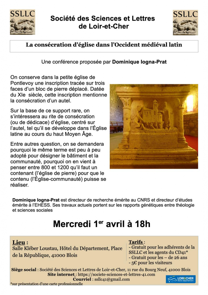 Une conférence proposée par la Société des Sciences et Lettres autour du rite de consécration des églises au Moyen Âge. Le sujet sera abordé par Dominique Iogna-Prat, directeur de recherche émérite au CNRS et directeur d’études émérite à l’EHESS, spécialiste des liens entre théologie et sciences sociales.