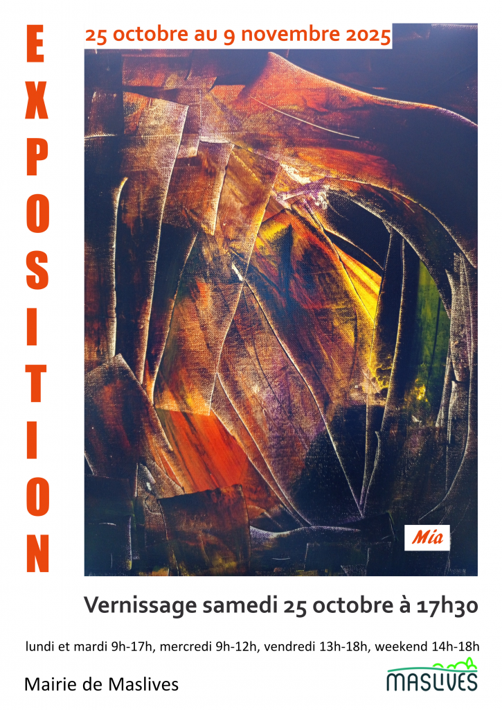 La mairie de Maslives accueille une exposition des œuvres de Mía, où matières et couleurs se superposent dans une approche abstraite et lumineuse. Le vernissage aura lieu le samedi 25 octobre à 17h30.