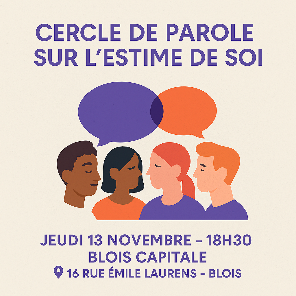 ➡️ Parce que Blois Capitale est aussi un lieu de vie, voici un temps pour se parler à cœur ouvert, partager ses expériences autour du manque de confiance et de l’estime de soi. La parole circulera librement.