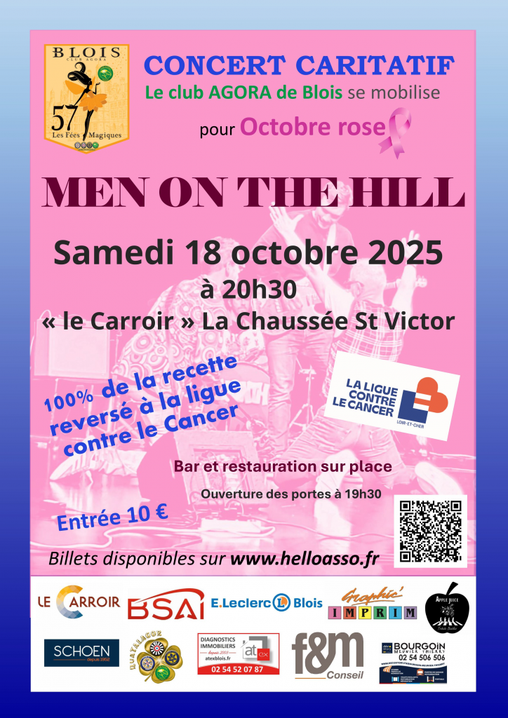 L’événement phare de l’automne est le concert caritatif d’Octobre Rose, organisé avec le groupe Men on the Hill, composé de soignants du CHRU de Tours, qui jouent bénévolement. Le concert se tient le samedi 18 octobre 2025, à 20h30, au Carroir, à La Chaussée-Saint-Victor. L’entrée est à 10 € (ou 25 € en formule VIP avec coupe de champagne et encas). L’an dernier, la salle affichait complet. « En 2024, environ 30 % des billets ont été vendus le soir même. Cela reste possible, mais avec 220 places, il vaut mieux réserver », souligne Valérie Pollet. La belle ambiance de la première édition a marqué les esprits : « Les gens en parlent encore. Cela aide à remplir la salle. »
